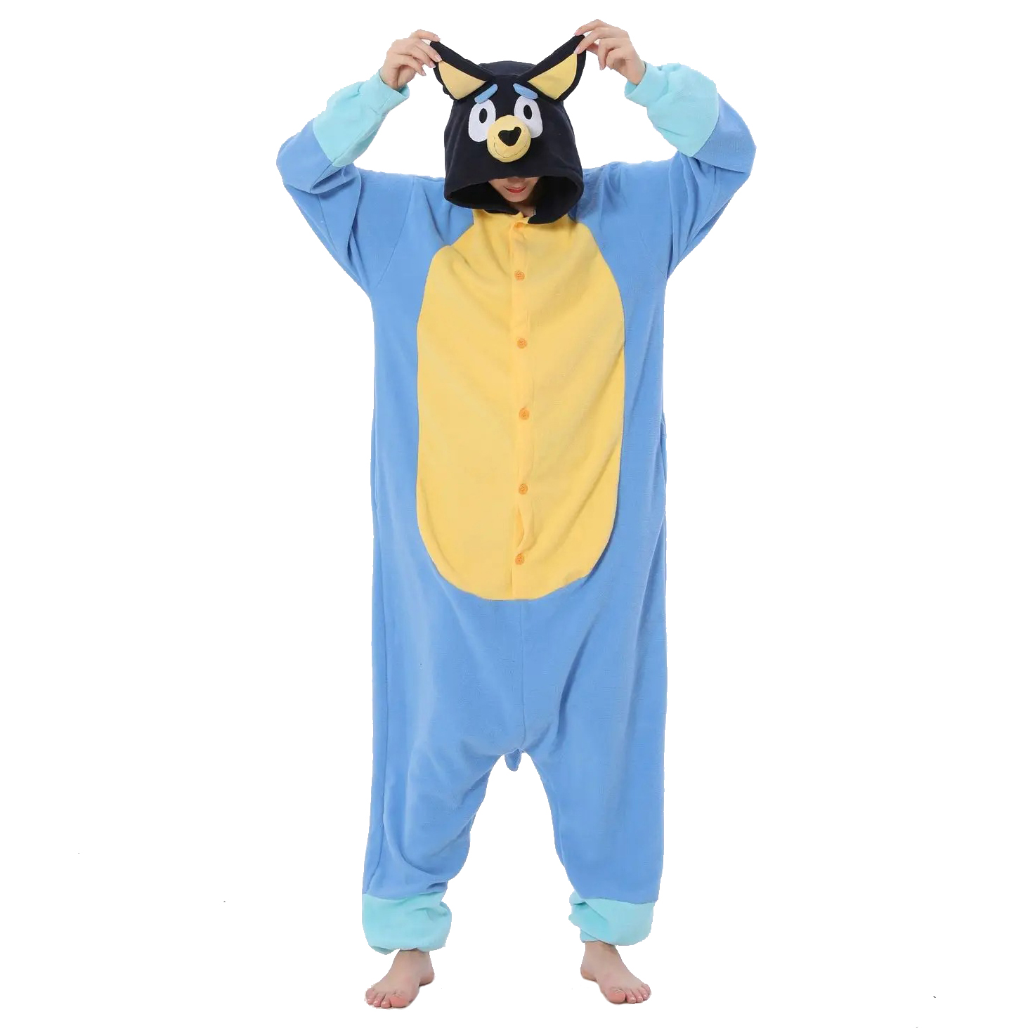 The Bluey onesie for adults is designed to satisfy all your cosy-night-in desires. Its fleece fabric wraps you in cloud-soft comfort, instantly creating that cuddly feeling you’ll never want to leave. Meanwhile, its playful design delights Bluey fans young and old. With its adorable dog-inspired look, it adds a fun, light-hearted touch to your evenings and sparks that sense of play we all secretly love.