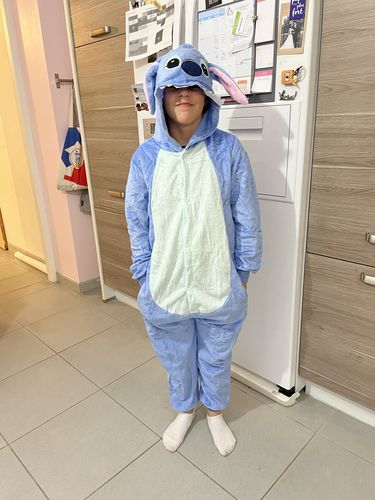 Onesie offered to a 17-year-old girl. Parcel arrived to Réunion in reasonable time and the recipient is over the moon! She wore it all day as soon as she received it. Size L is right for 170cm, the colours are faithful to the photo and the material is soft and very pleasant to wear.